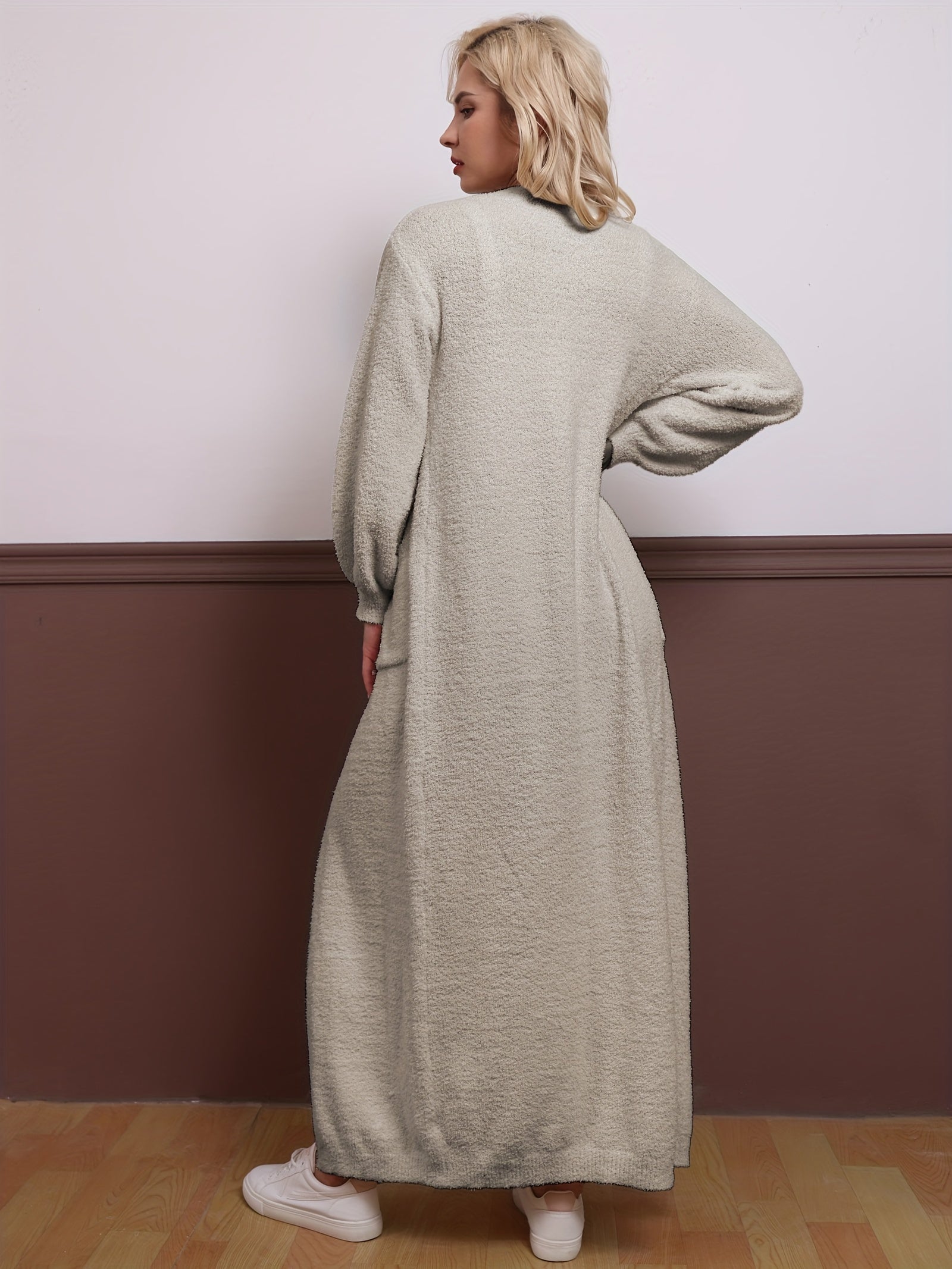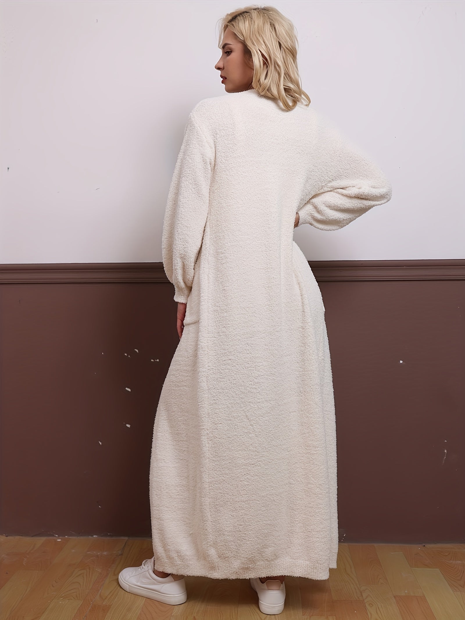 Casual Plush Three-piece Set, Crop Cami Top + Elastic Waist Pants + Open Front Pockets Cardigan Outfits, Women's Clothing