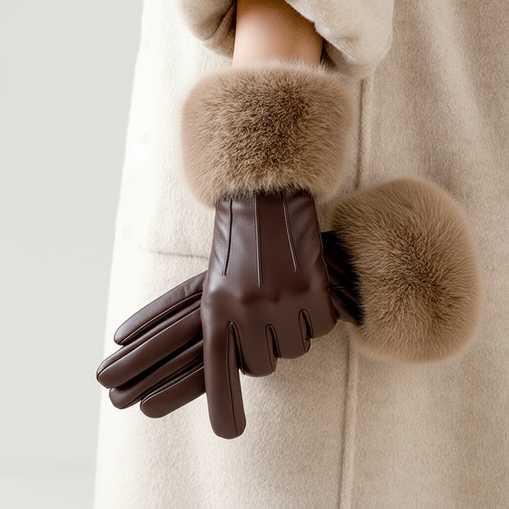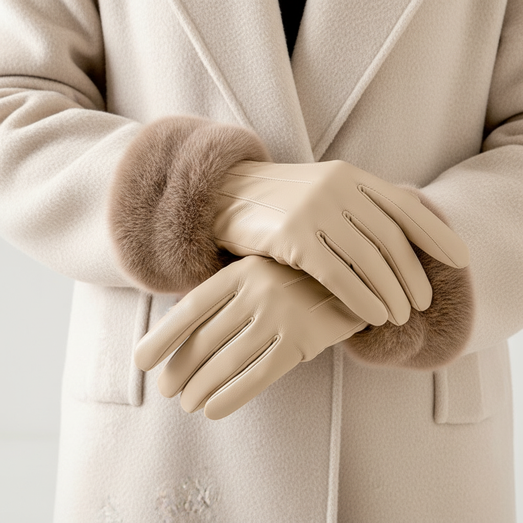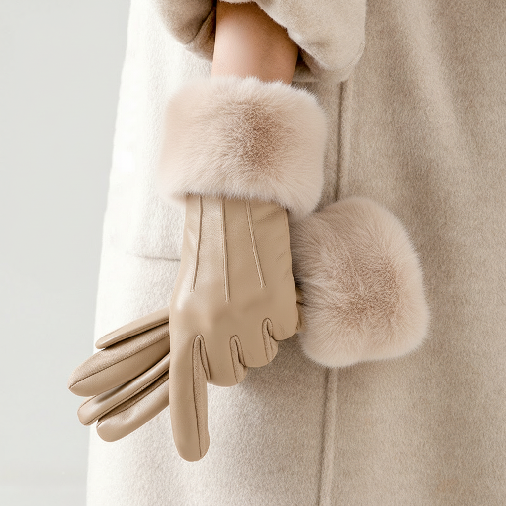 Haltu þér hlýjum á þessu tímabili með mjúkum leðurhönskum með mjúkum gervifeldskreytingum fyrir aukin þægindi og stíl. Þeir eru hannaðir fyrir daglegt kalt veður og bjóða upp á mjúka og sveigjanlega passform sem passar vel við ullarkápur, peysur og vetrarföt.