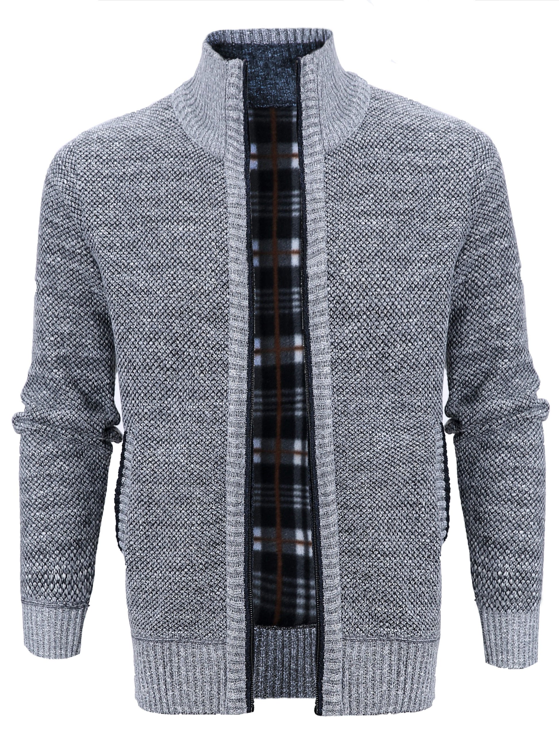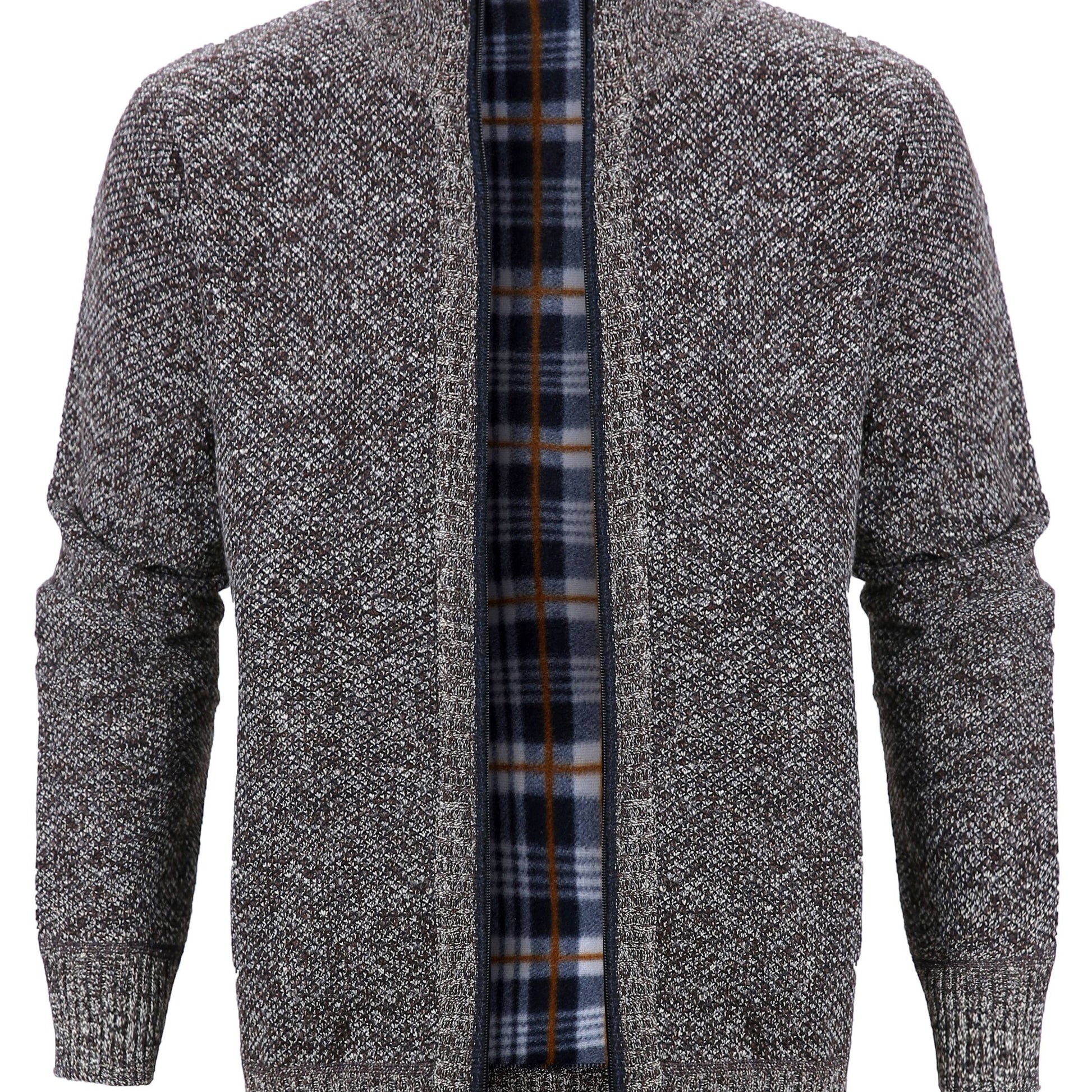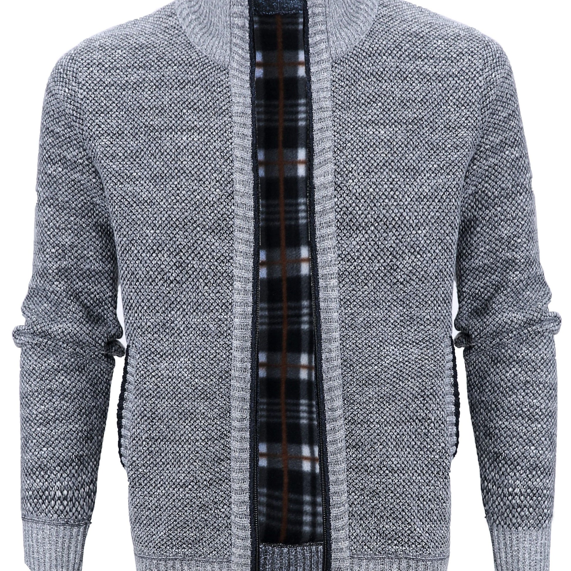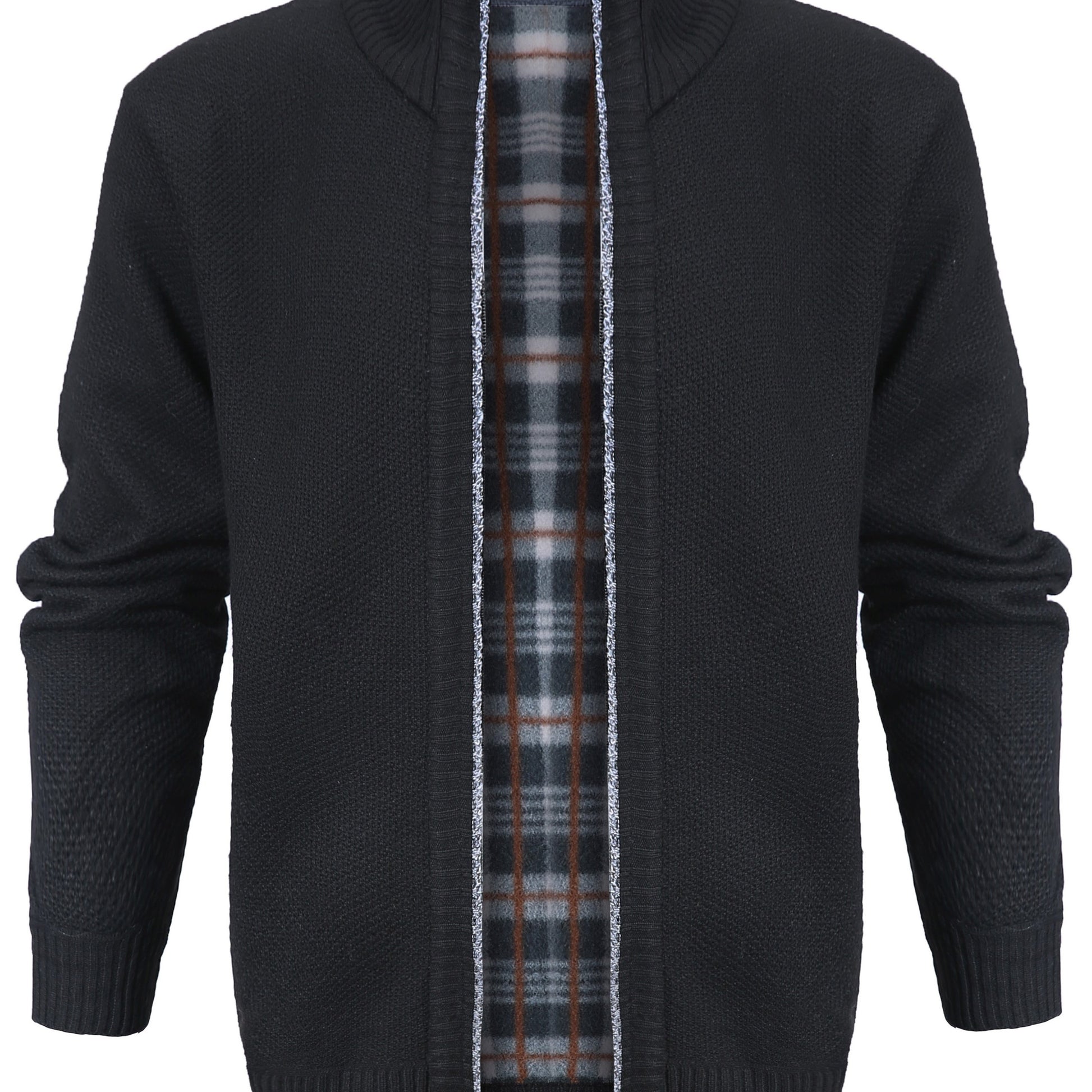 Warm Zip Up Jacket Sweater, Men's Casual Lapel Solid Color Cardigan For Fall Winter