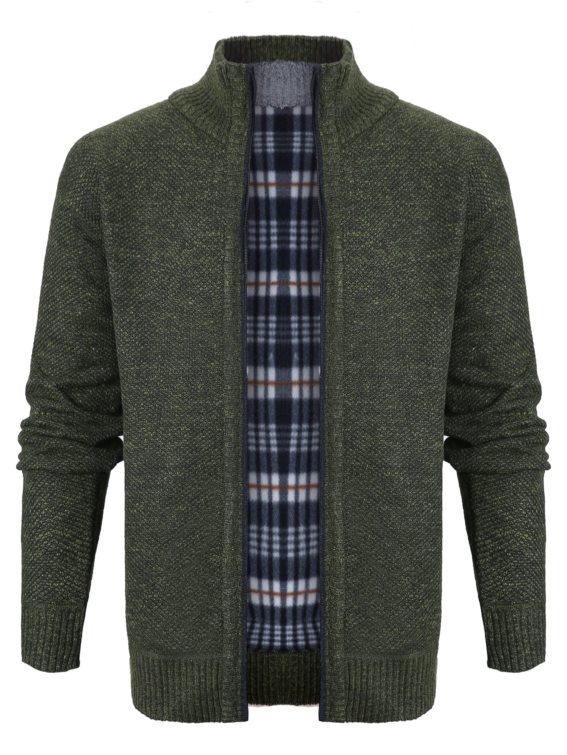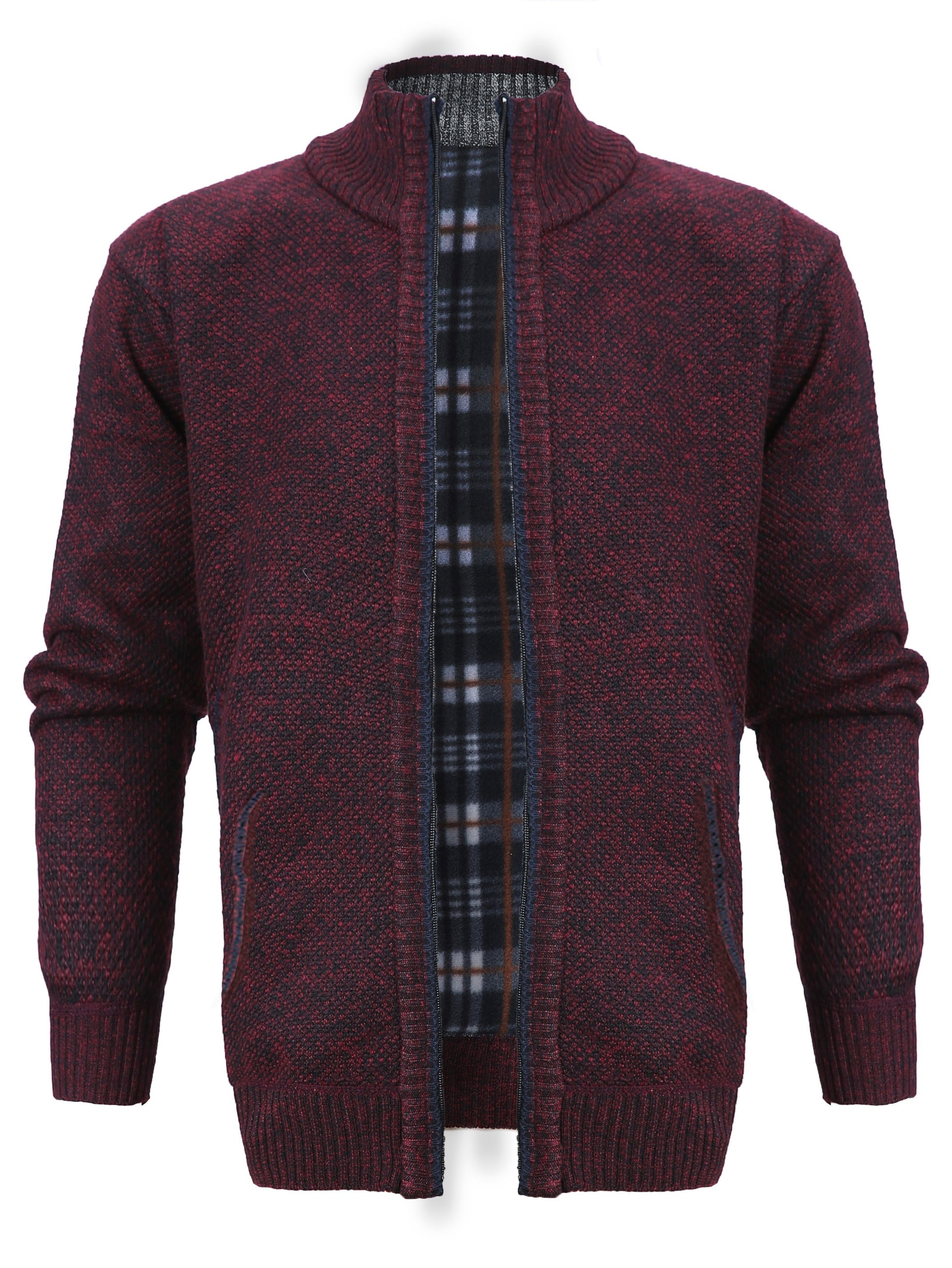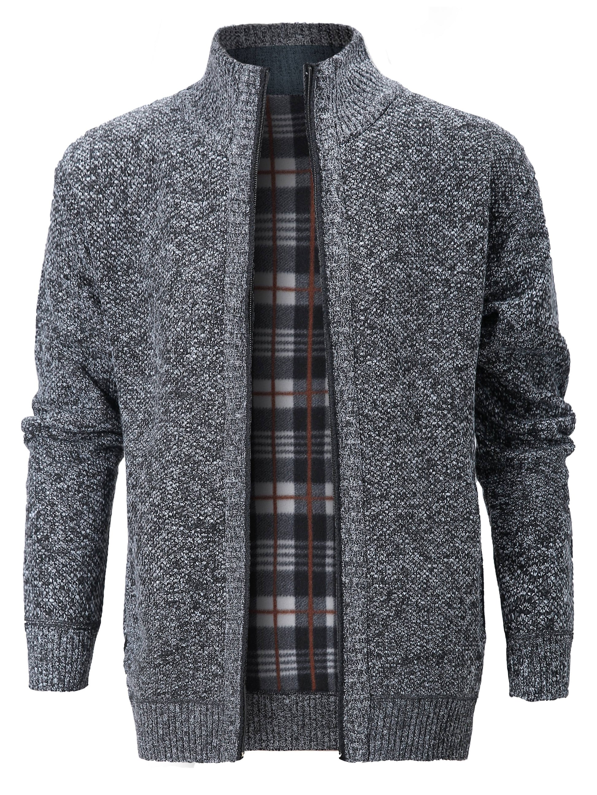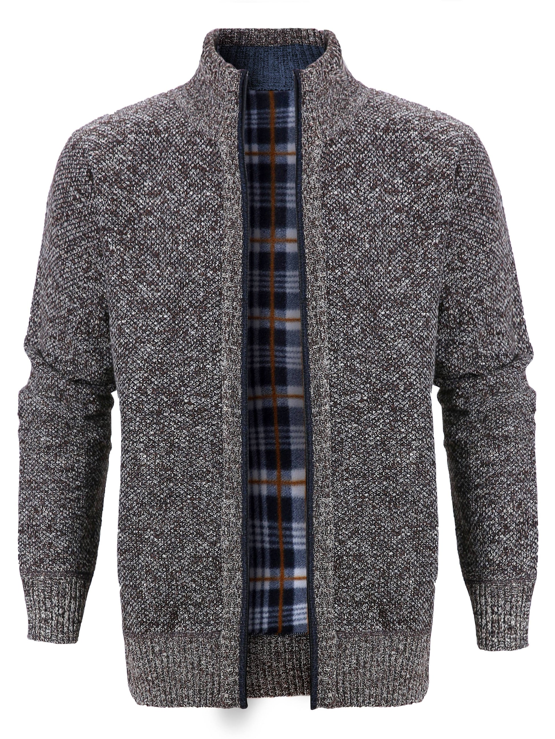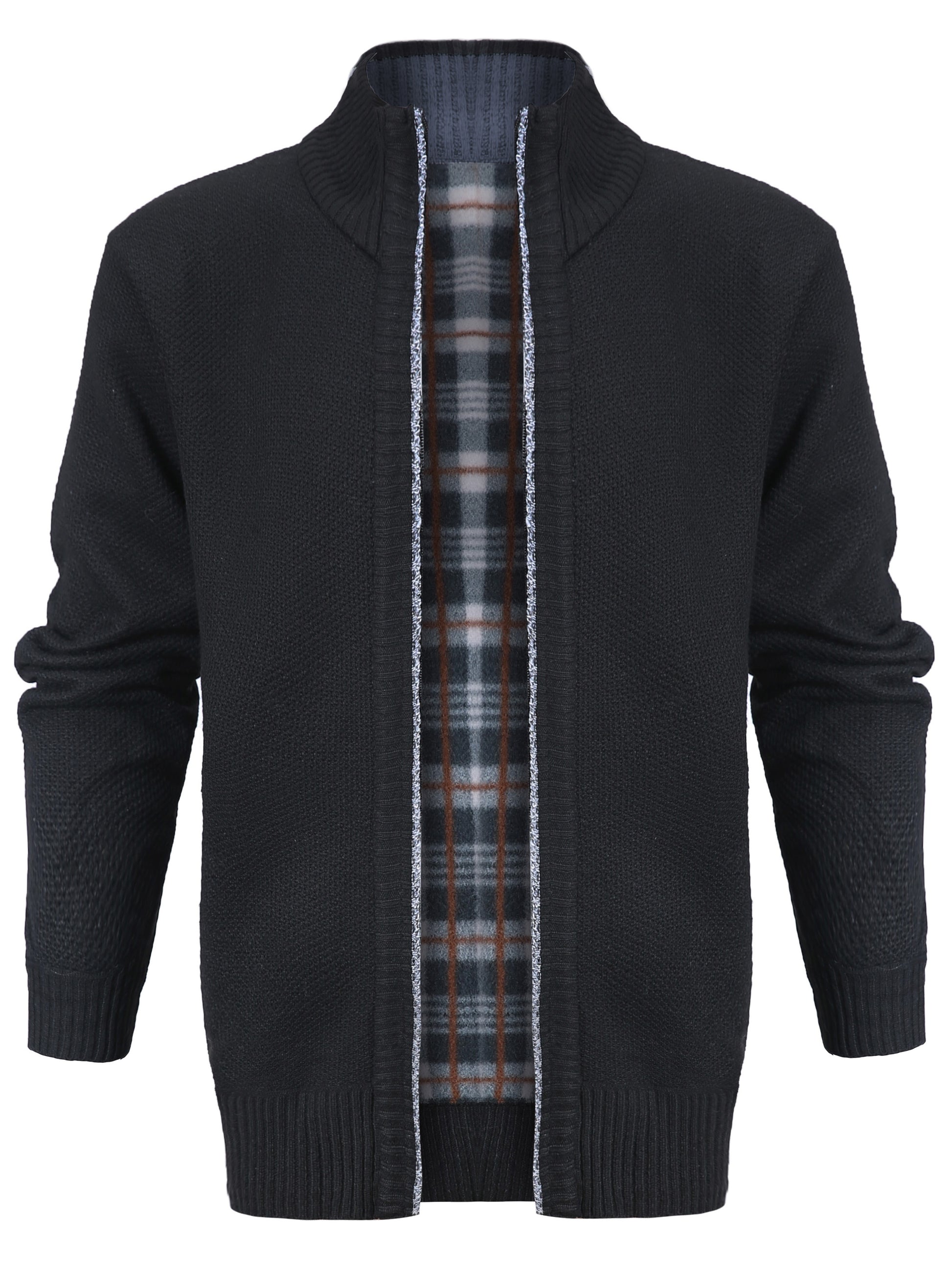 Warm Zip Up Jacket Sweater, Men's Casual Lapel Solid Color Cardigan For Fall Winter